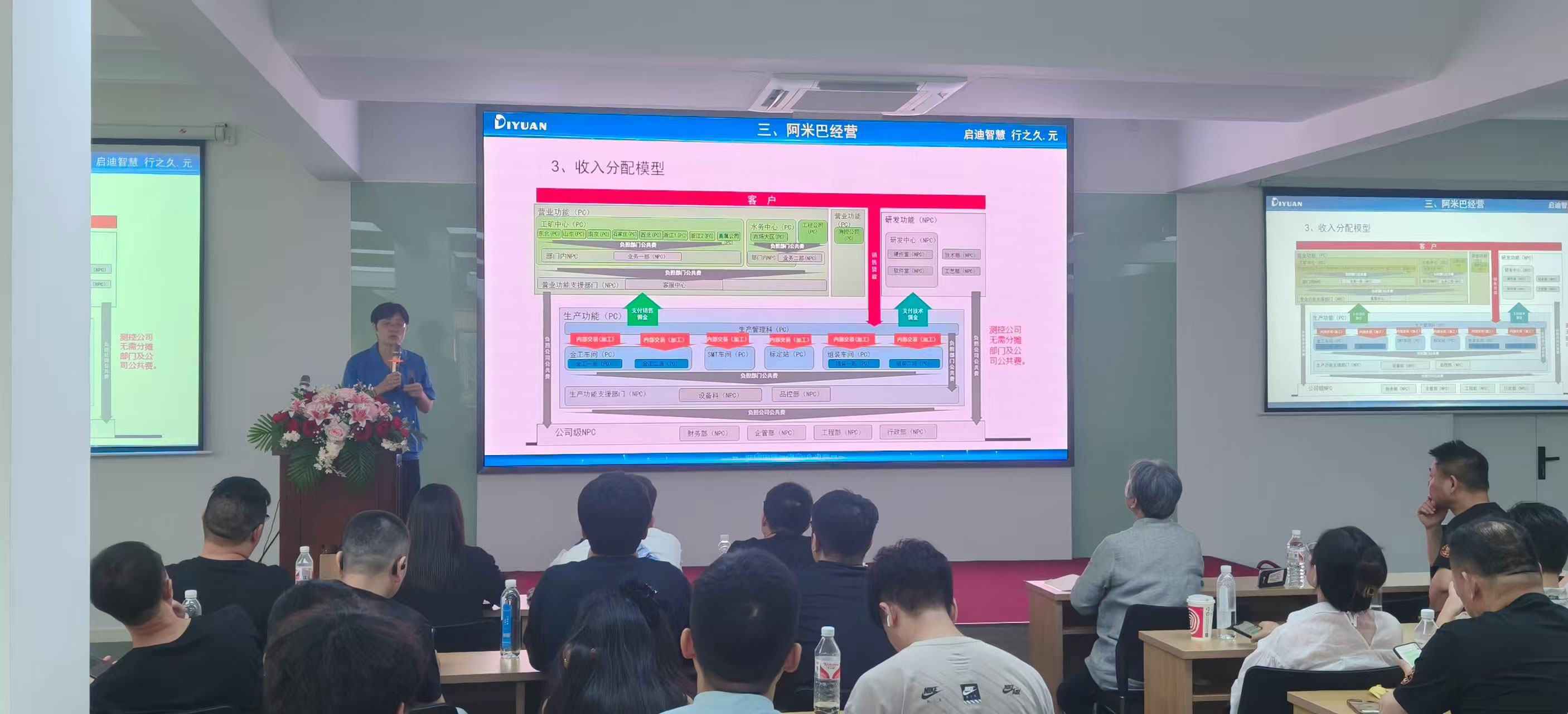 7月16日下午,杭州盛和塾城東分中心東盛班 39 名學(xué)員拜訪浙江迪元儀表有限公司,開展以“企業(yè)數(shù)字化落地實踐”為主題的游學(xué)交流活動。本次活動聚焦數(shù)字化轉(zhuǎn)型核心路徑,深入探討稻盛成功方程式與阿米巴模式在企業(yè)數(shù)字化經(jīng)營中的實踐應(yīng)用。